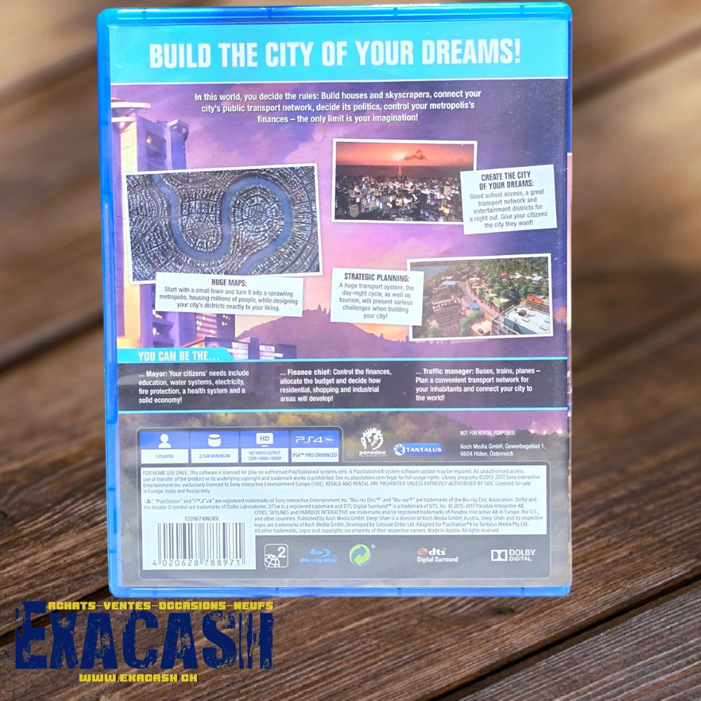 Synopsis : Jeu de simulation sur PC, Cities Skylines vous invite à créer la ville de vos rêves. Vous pourrez ériger des structures plus extraordinaires les unes que les autres afin de dominer le paysage, tout en découvrant de nombreux moyens pour étendre votre création.