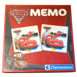 Un jeu de mémoire et d’association. Le but du jeu est de reformer les paires en utilisant sa mémoire visuelle. Le gagnant est celui qui a trouvé le plus de paires. Toutes les cartes sont illustrées avec des images de Cars 2. A partir de 1 joueur.