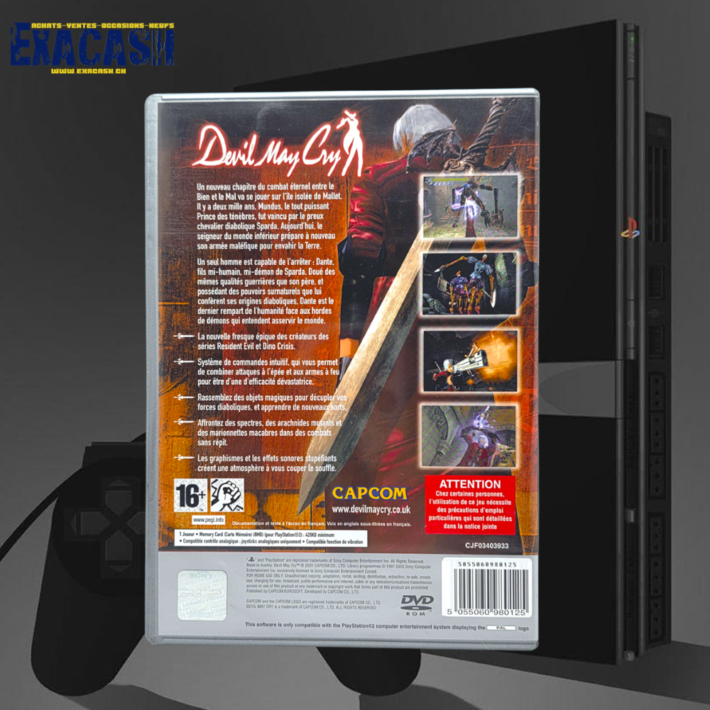 Synopsis : Devil May Cry est un jeu d’action sorti sur PS2. Le joueur incarne Dante, un chasseur de monstres qui a la mission de nettoyer un château et ses environs. Tout un florilège d’armes sont à débloquer au fur et à mesure des salles à vider, des énigmes à résoudre et des boss à abattre. Epées, pistolets, lance-roquettes… Tant de manières différentes pour casser du démon avec style.