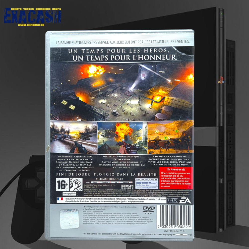 Synopsis : Medal of Honor : Les Faucons de Guerre sur PS2 est un shoot à la première personne. Vous y incarnez un soldat choisit pour faire partie d’un tout nouveau programme d’espionnage : l’OSS. Vos choix sont déterminants sur le champ de bataille, à vous de déterminer le chemin le plus judicieux. Mettez en déroute les plus grands officiers ennemis et avancez dans l’histoire en rassemblant des informations pour les prochaines missions.