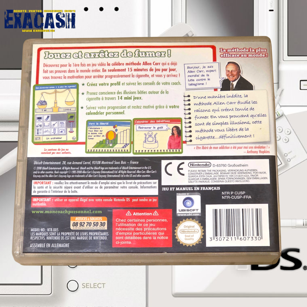 Synopsis : Développé en collaboration avec les experts de la méthode d’Allen Carr, cette cartouche sur Nintendo DS vous motive à prendre le contrôle sur la cigarette à travers des jeux ludiques, des conseils, des astuces et des informations percutantes. Et n’oubliez pas : « Le tabac c’est tabou, on en viendra tous à bout ! »