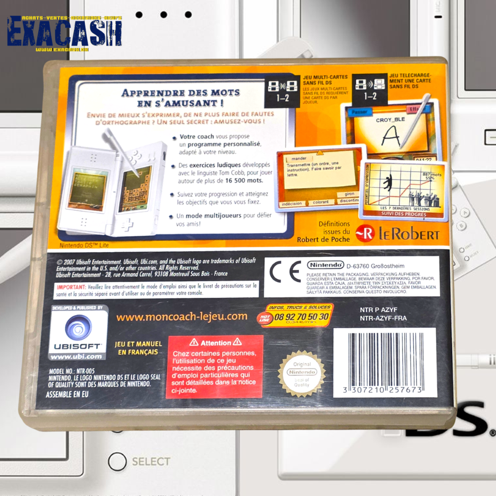 Synopsis : Mon Coach Personnel : J’enrichis mon Vocabulaire sur Wii vous permet de réduire vos fautes d’orthographe tout en vous amusant. La cartouche vous propose un programme d’entraînement personnalisé, adapté à votre niveau avec des exercices ludiques pour s’entraîner et s’amuser autour de plus de 16 500 mots accompagnés de leurs définitions. Un suivi de votre progression selon les objectifs que vous vous fixez est proposé de même qu’un mode multijoueur pour défier vos amis !
