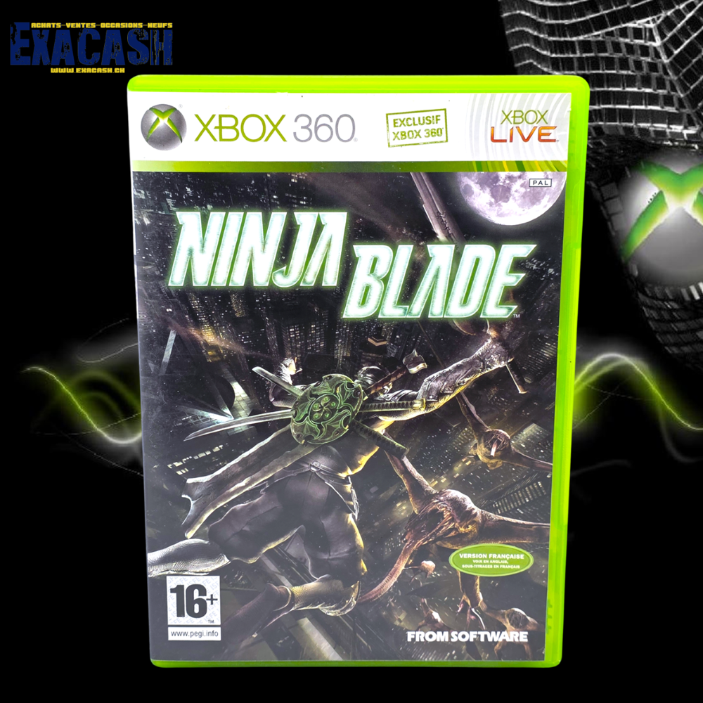 Synopsis : Ninja Blade est un jeu d’action sur Xbox 360 qui vous plonge dans un futur proche alors que la ville de Tokyo est menacée par une terrible infection parasitaire. Seul un ninja moderne tel que Ken Ogawa est capable de contrer ce fléau en utilisant ses trois armes et ses différents ninjutsus.