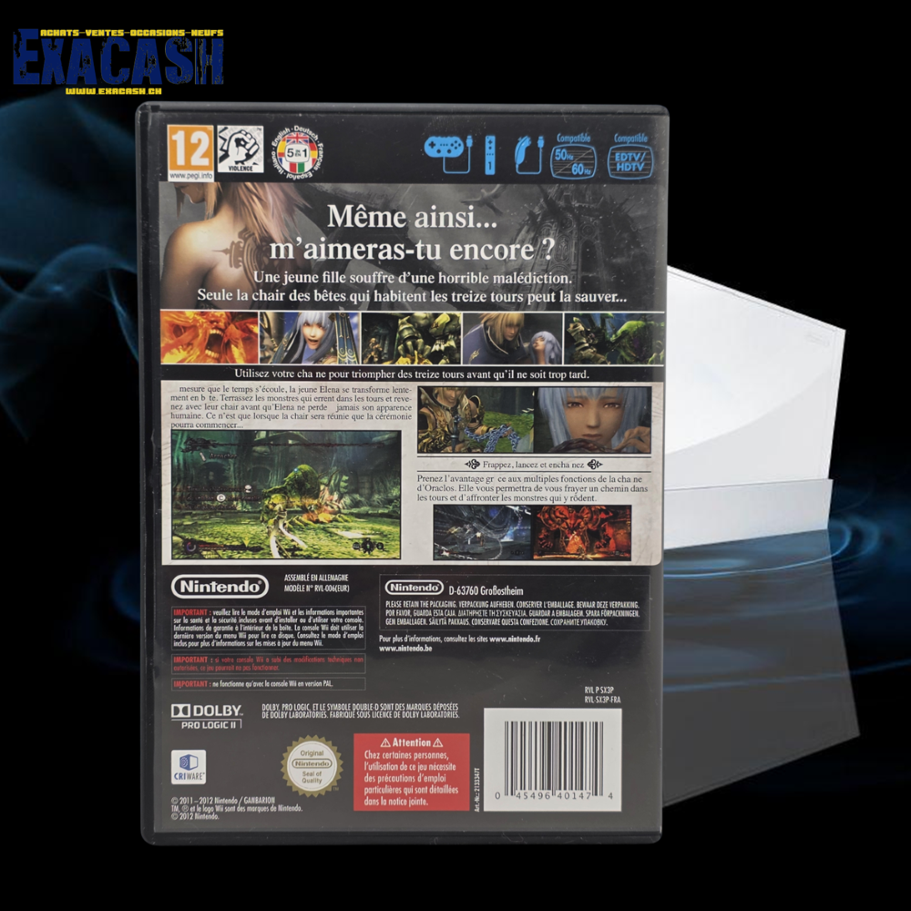 Synopsis : Pandora’s Tower est un jeu d’action/aventure sur Wii. La belle Elena est marquée par une terrible malédiction qui la transforme peu à peu en monstre difforme. Aeron tente de la sauver en parcourant Treize Tours pour lui rapporter de la chair de bête. Le jeu mélange énigmes, phases de plates-formes, action et éléments de jeu de rôle comme le crafting.