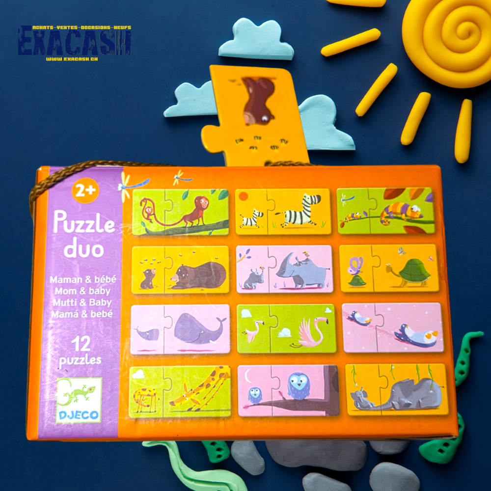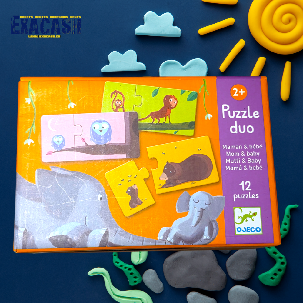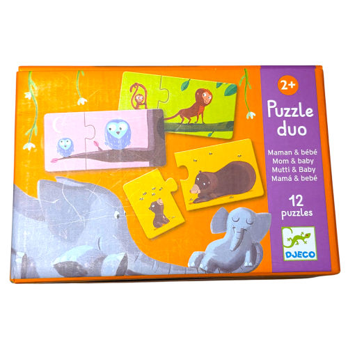 Puzzle 2 pièces : l’enfant associe la maman avec son bébé.