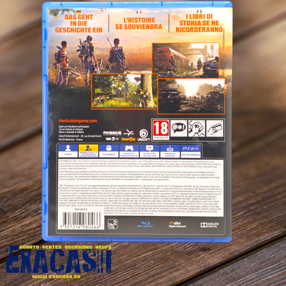 Synopsis : Tom Clancy’s The Division est un jeu d’action en ligne où le joueur est au cœur d’un univers post-apocalyptique. Ce dernier doit jongler entre coopération, stratégie et technologie pour survivre dans un environnement hostile. Partez en compagnie de la Division pour sauver Washington D.C. de l’effondrement..