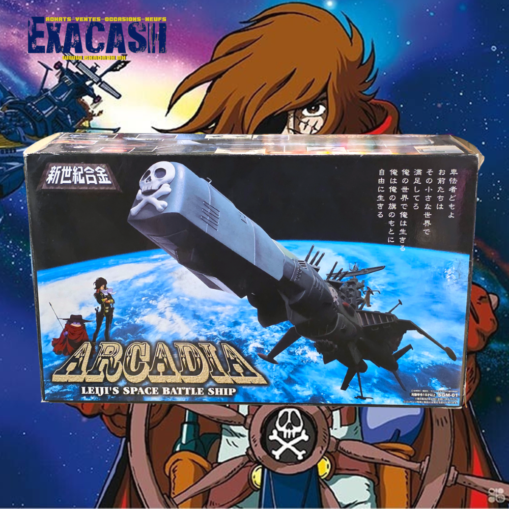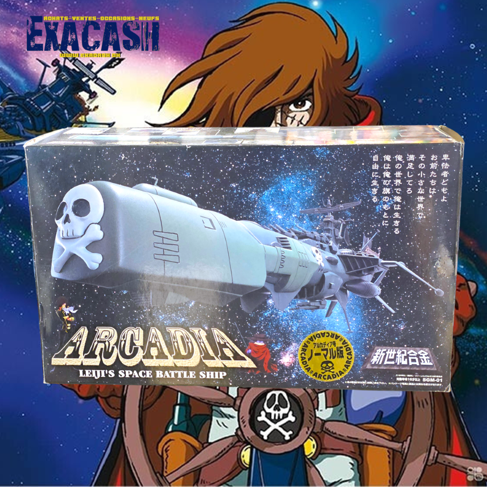 Commercialisée par Aoshima en 1998, cette magnifique réplique de l’Arcadia, vaisseau du Capitaine Albator est fabriquée en métal die-cast & plastique.