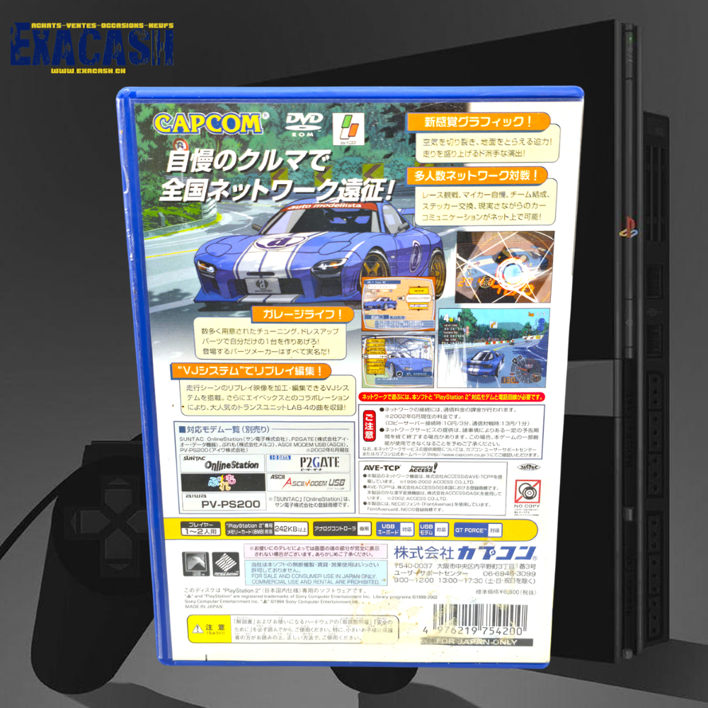 Synopsis : Auto Modellista est un jeu de courses sorti sur Playstation 2 au style visuel très marqué. Ce titre opte pour un rendu cartoon avec des graphismes en cel shading. Ce qui ne l’empêche pas de proposer un nombre de circuits et de véhicules conséquent ainsi qu’un mode multijoueur en écran partagé.