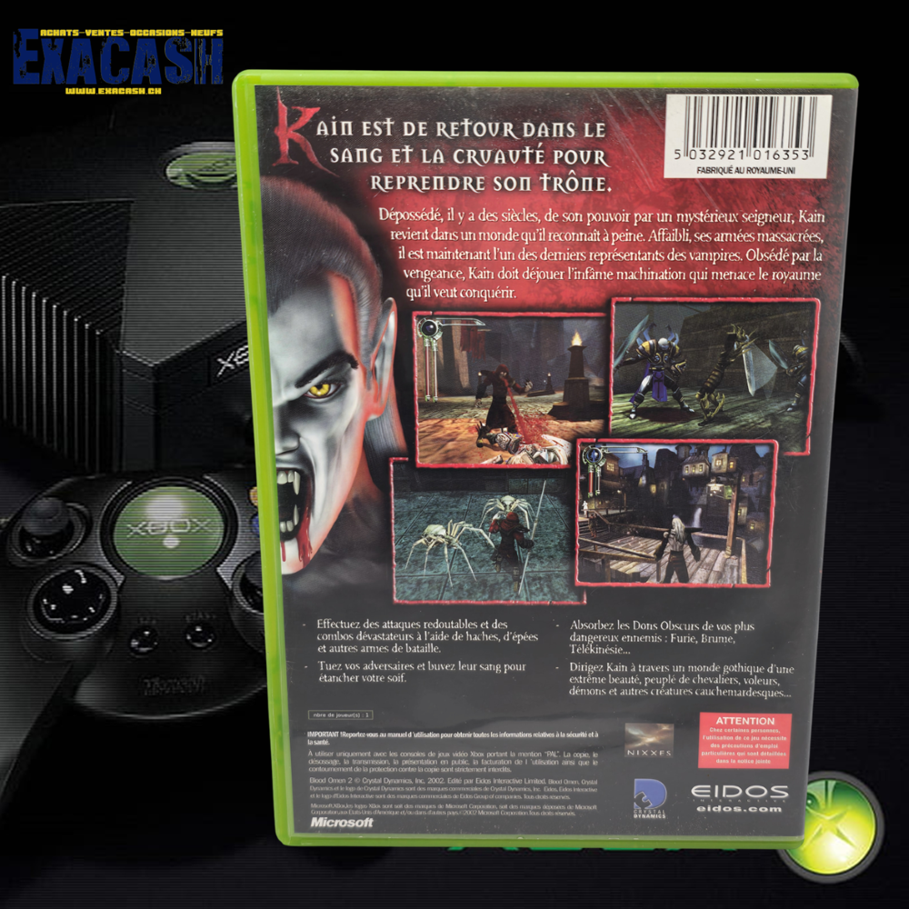 Synopsis : Kain est de retour pour reprendre son trône dans Blood Omen 2, un jeu d’action/aventure sur Xbox. Dépossédé il y a des siècles de son pouvoir par un mystérieux seigneur, Kain revient dans un monde qu’il a du mal à reconnaître. Affaibli et son armée massacrée, le vampire est l’un des derniers représentants de son espèce. Mais il n’a qu’une seule obsession, celle de se venger.