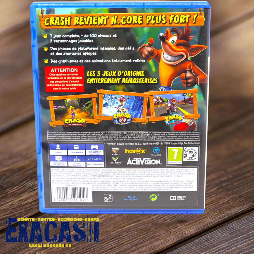 Synopsis : Crash Bandicoot N. Sane Trilogy est une compilation des trois premiers épisodes de la série remasterisés, à savoir : Crash Bandicoot, Crash Bandicoot 2 : Cortex Strikes Back et Crash Bandicoot 3 : Warped. Les graphismes ont donc été totalement refaits et quelques fonctionnalités ont été ajoutées, notamment le contre la montre pour les deux premiers épisodes..