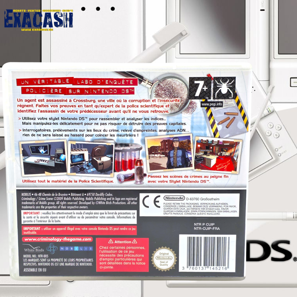 Synopsis : Rejoignez les rangs de la police scientifique dans le jeu d’aventure Criminology sur DS. Enquêtez sur différents crimes, relevez des empreintes, menez des études balistique, interrogez des témoins, confrontez des suspects et surtout arrêtez les criminels. Tentez d’impressionner vos supérieurs avec vos dossiers solidement ficelés.