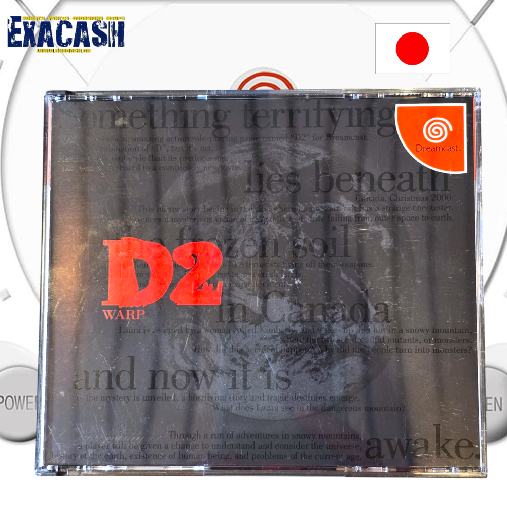 Synopsis : D2 sur Dreamcast est un soft mêlant survival-horror, jeu de tir et jeu de rôle. Vous incarnez Laura, perdue dans la Toundra après un crash en avion et frappée d’amnésie. Votre avancée dans le jeu dévoilera des indices permettant à l’héroïne de retrouver petit à petit la mémoire.