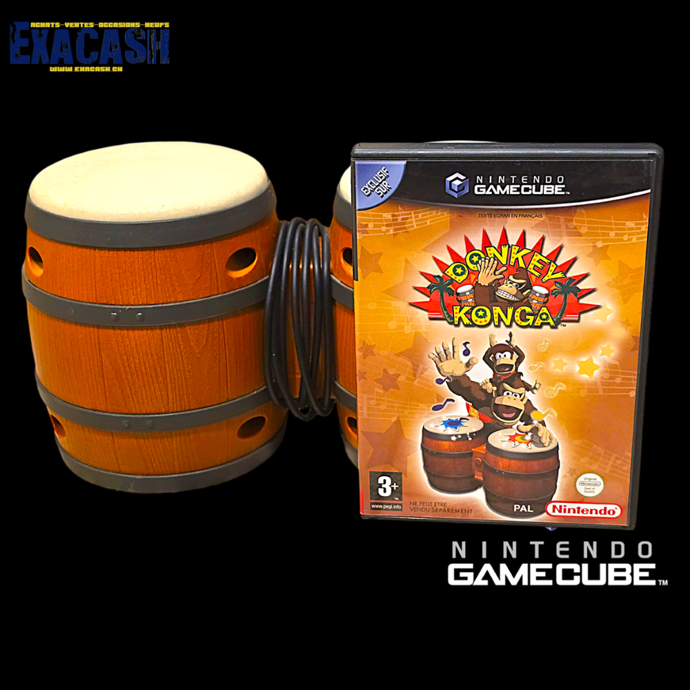 Synopsis : Donkey Konga sur Gamecube est un jeu de rythme. Parez-vous des tamtams du célèbre Donkey Kong, et taper en rythme en fonction des instructions s’affichant sur l’écran. Seul ou à plusieurs, amusez-vous et égayez vos soirées sur des morceaux aussi bien pop, classiques ou même issus de la discothèque personnelle de Nintendo.