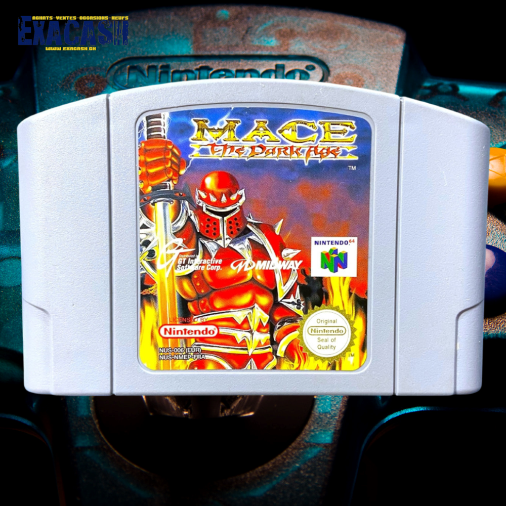 Synopsis : Mace : The Dark Age est un jeu de combat sur Nintendo 64. Le soft propose pas moins de 16 personnages jouables ainsi que 6 autres à débloquer. Ces personnages se battent à l’aide de masses, d’épées et de nombreuses autres armes tranchantes. Mace : The Dark Age propose aussi des arènes multijoueurs avec des pièges que vous devrez éviter à tout prix si vous ne voulez pas perdre le combats face à vos amis.