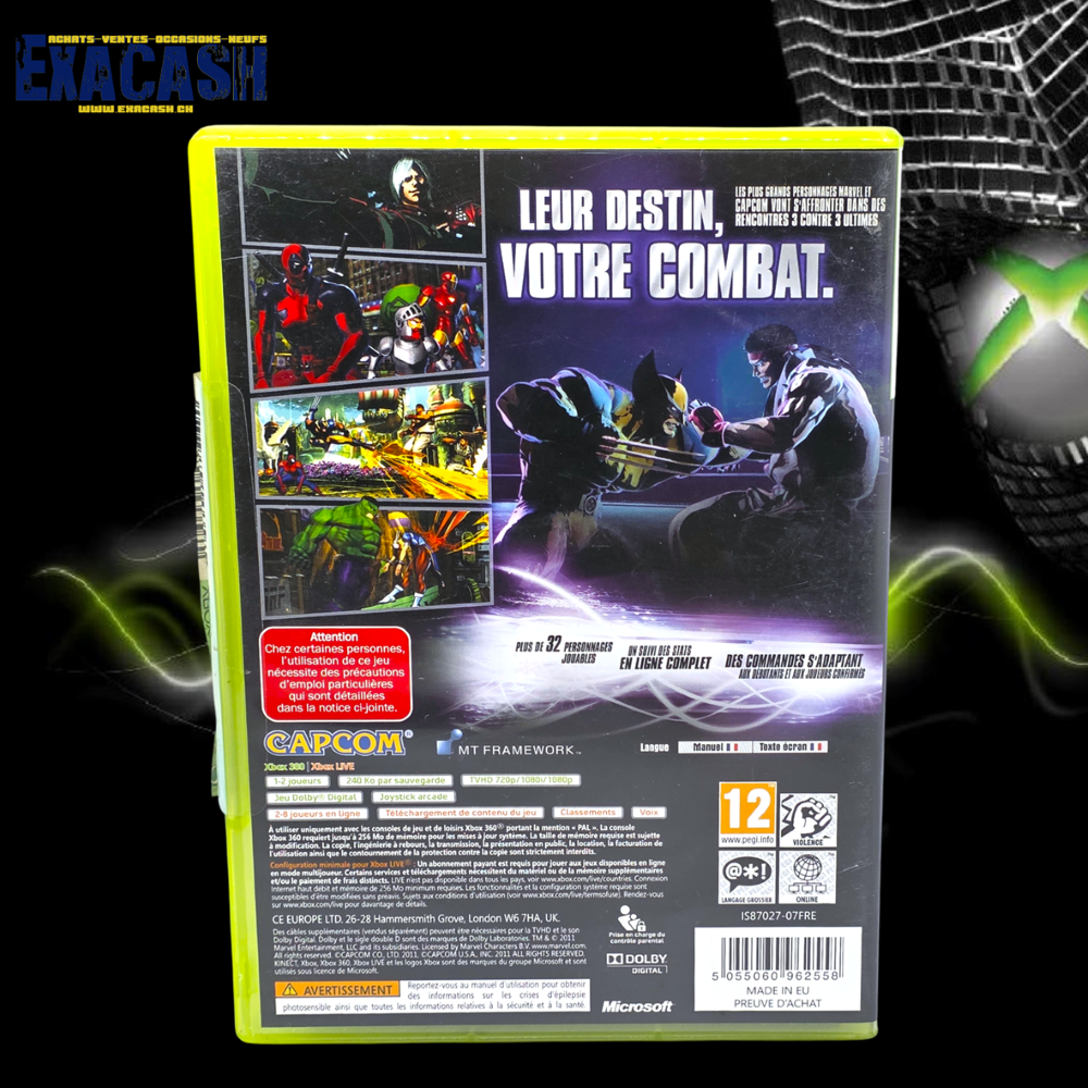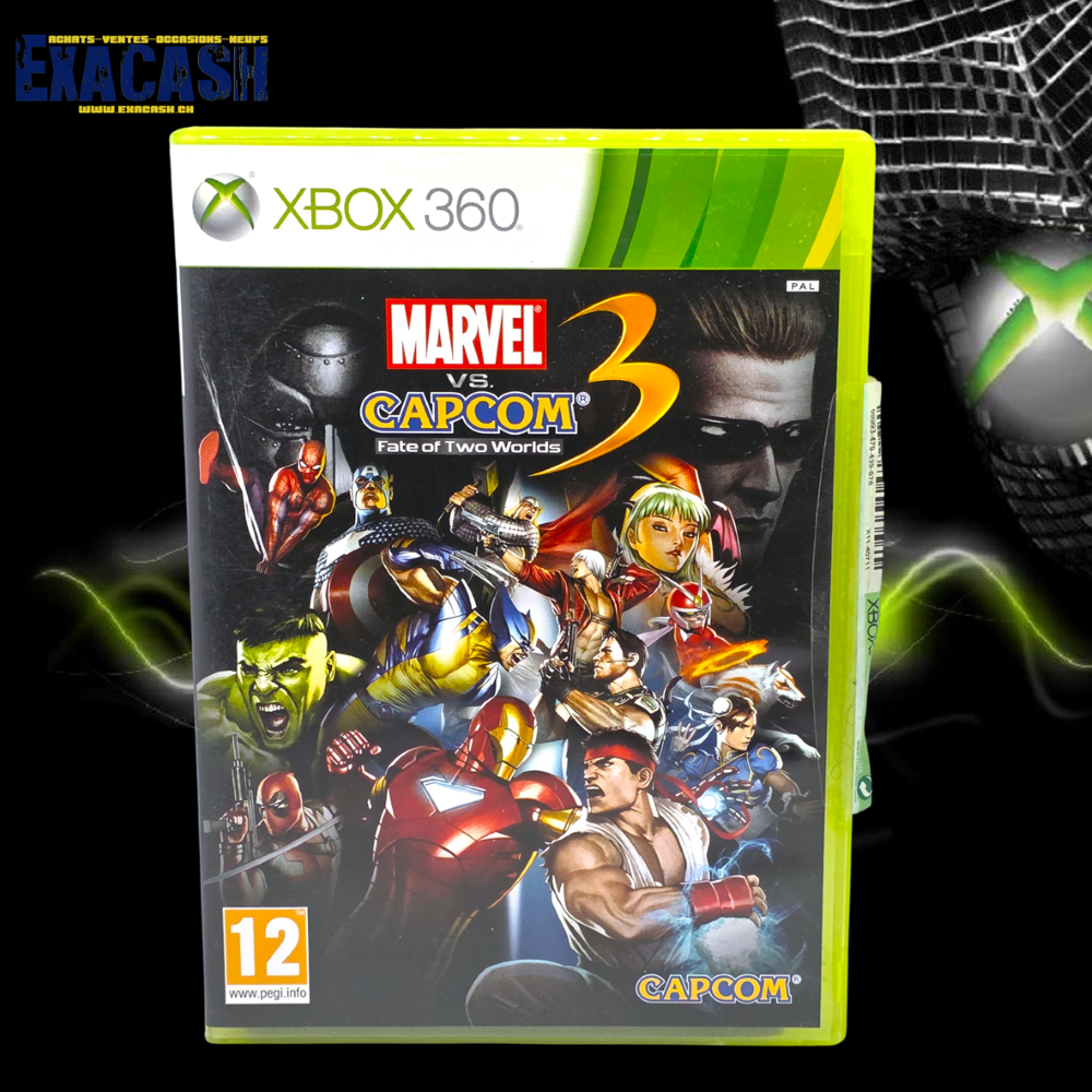 Synopsis : Marvel vs. Capcom 3 : Fate of Two Worlds est un jeu de combat en 2D sur Xbox 360. Retrouvez une quarantaine de personnages de bandes dessinées ou de jeux vidéo tel que Iron Man, Dante ou encore Viewtiful Joe. Le système de combat est agrémenté de nouveautés comme les Team Aerials Combos, un combo à réaliser à plusieurs, ou le X-factor, qui permet de reprendre du punch dans un état critique.