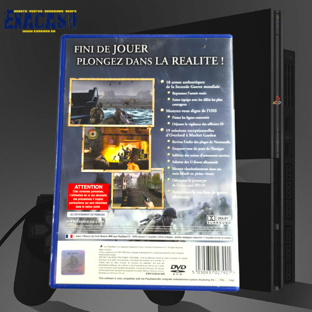 Synopsis : Medal of Honor : En Première Ligne est un jeu de tir à la première personne sorti sur Playstation 2. Prenez le contrôle d’un simple soldat durant la Seconde Guerre mondiale et préparez-vous à vivre le conflit de façon intense grâce à une mise en scène hollywoodienne.