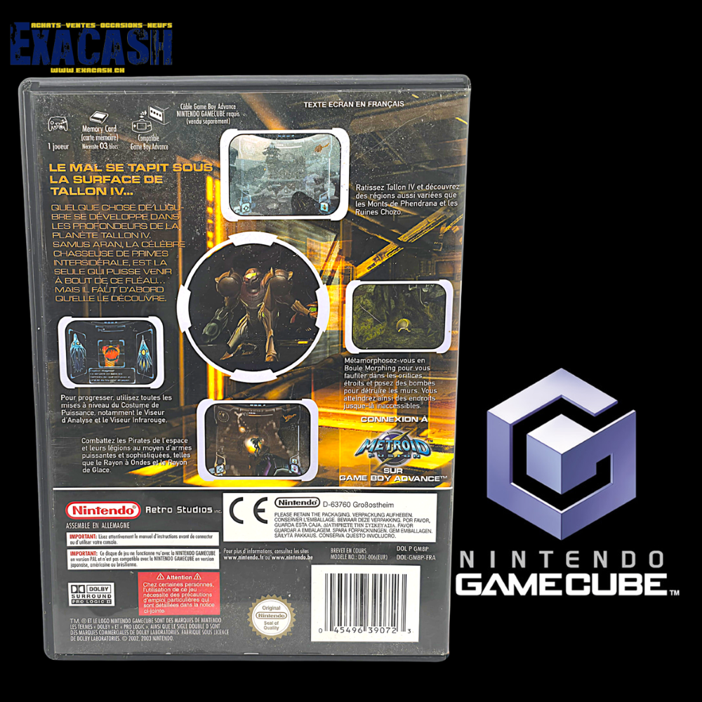 Synopsis : Metroid Prime est un jeu d’action en vue à la première personne qui vous met dans la peau de la célèbre chasseuse de primes, Samus. Une matière inconnue du nom de Phazon s’écrase sur la planète Tallon IV et y détruit la faune et la flore. Des pirates de l’espace tentent de contrôler le Phazon, Samus essaie de les en empêcher.