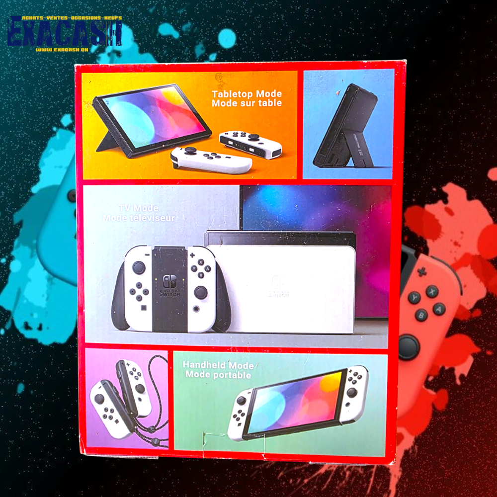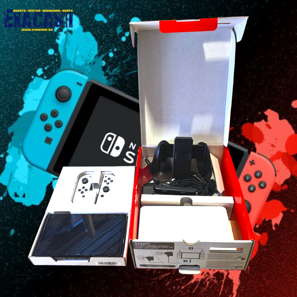 - Contenu de la boite : console, station d’accueil, Joy-Con, support Joy-Con, dragonne Joy-Con