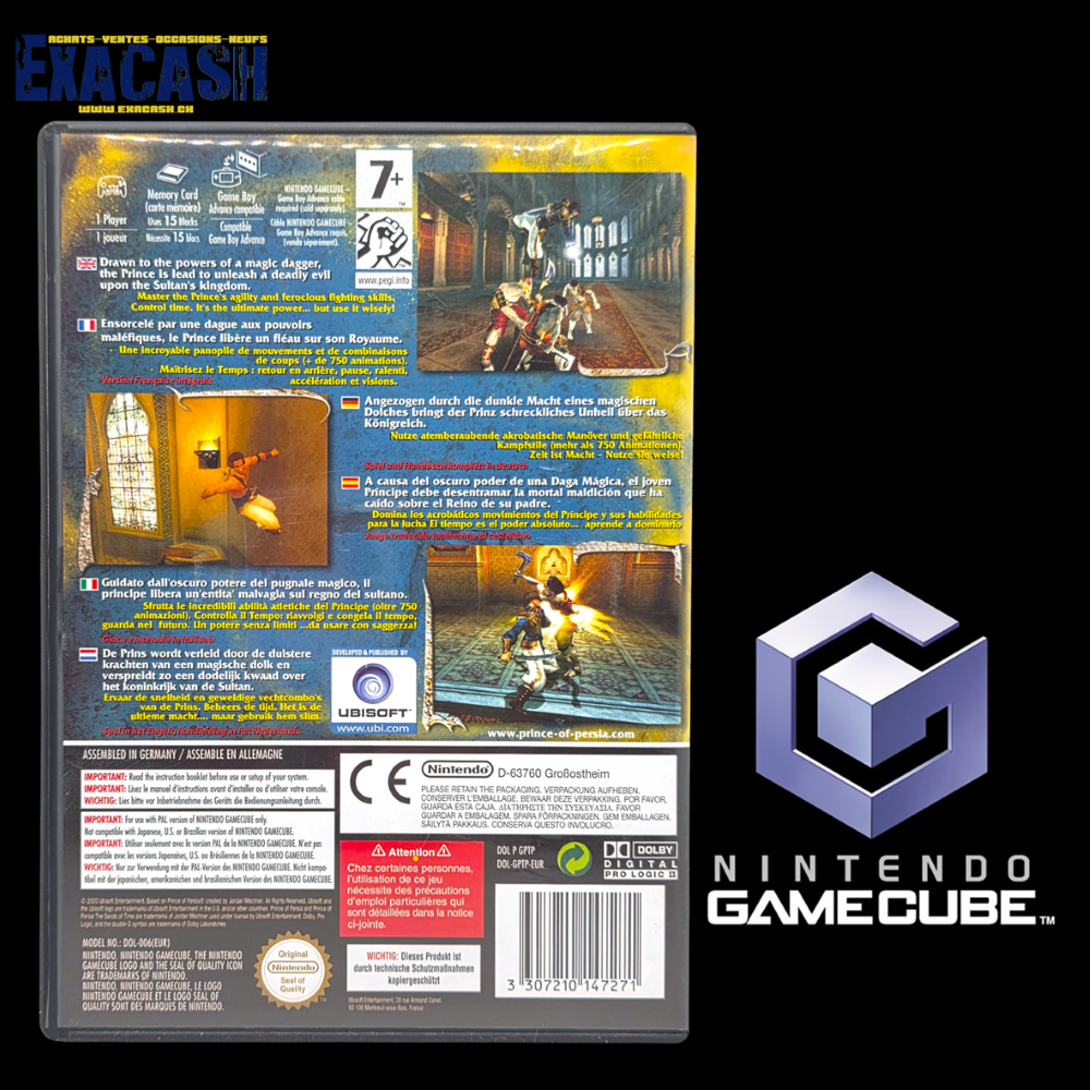 Synopsis : Prince of Persia : Les Sables du Temps est un jeu de plates-formes/action sur Gamecube. Vous incarnez à nouveau le jeune prince qui commet l’erreur d’ouvrir un sablier maléfique condamnant immédiatement les âmes des habitants du palais. Le diabolique Vizir est encore une fois derrière tout ça, et c’est en arpentant le palais secondé par Farah que le joueur devra mettre un terme à la malédiction.
