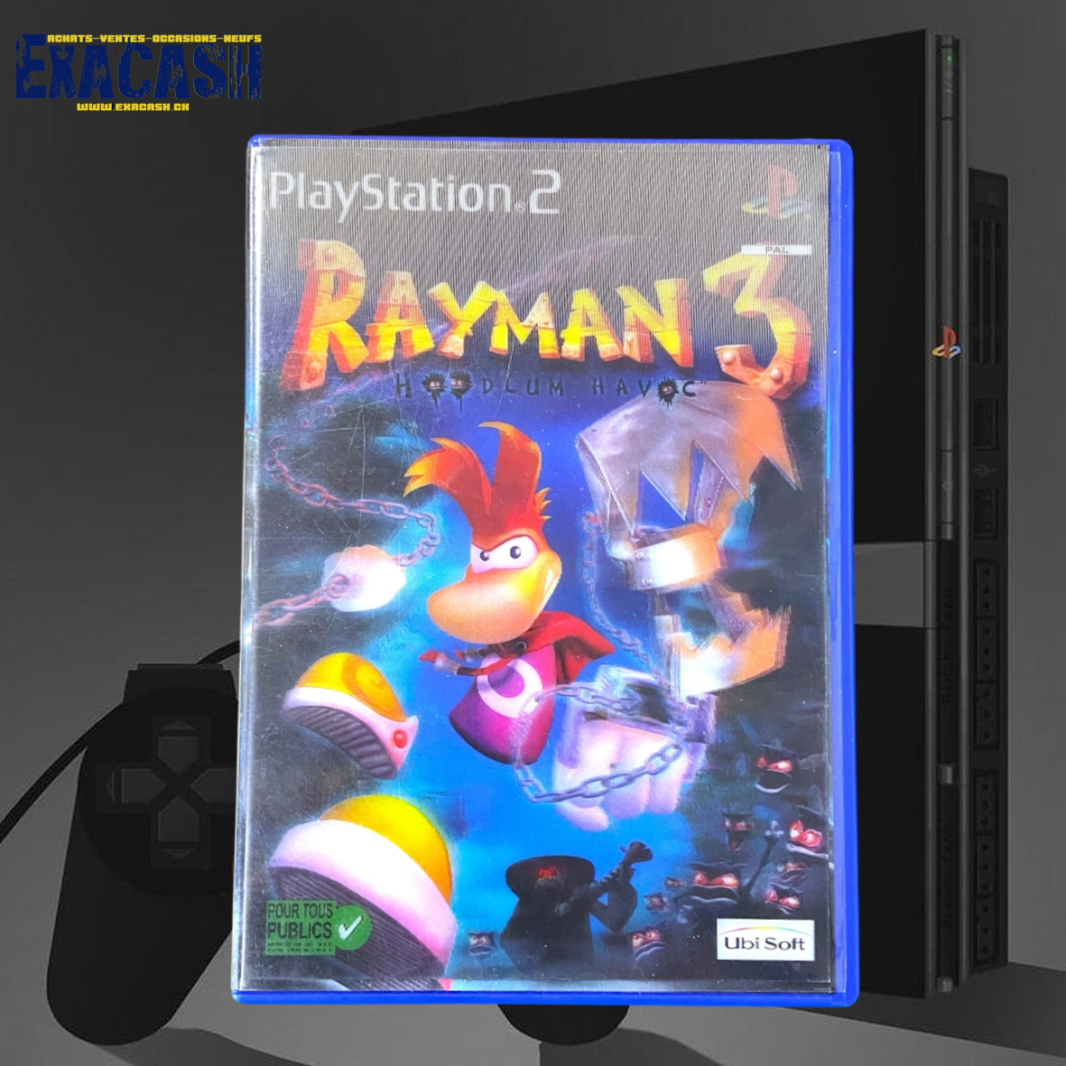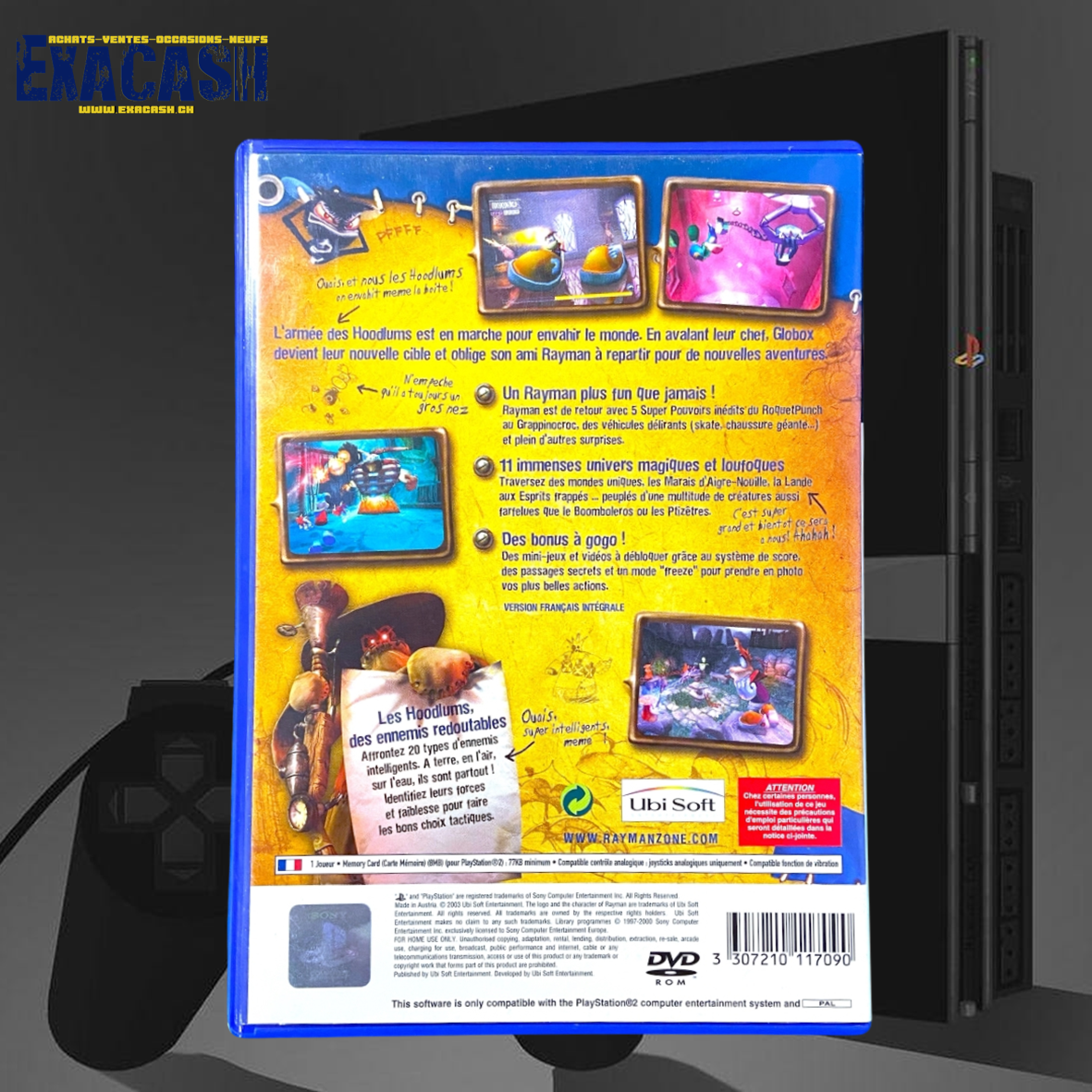 Synopsis : Rayman 3 : Hoodlum Havoc est un jeu de plates-formes sorti sur Playstation 2. Incarnez Rayman qui doit aider son ami Globox qui s’est attiré les foudres des Hoodlums. Pour cela, traversez 11 univers en usant des 5 super-pouvoirs inédits de Rayman et en affrontant 20 types d’ennemis différents.