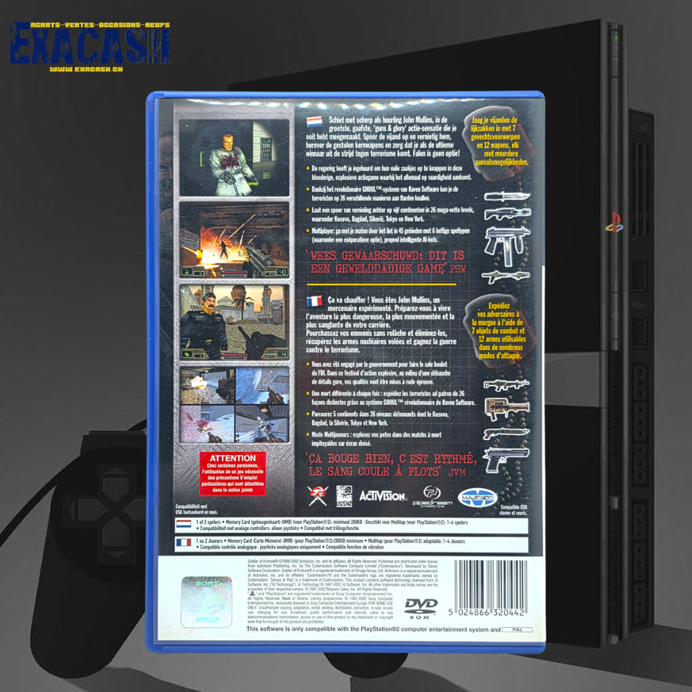 Synopsis : Soldier of Fortune sur Playstation 2 est un jeu de tir à la première personne dans lequel votre objectif est d’éliminer des terroristes. Le moteur physique gère une vingtaine de parties du corps, tenant par conséquent compte de l’endroit que vous heurtez avec vos balles.