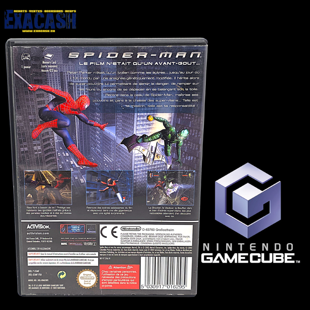 Synopsis : Spider-Man est un jeu d’action sur Gamecube dans lequel vous incarnez l’homme araignée alias Spider-Man. L’histoire du jeu reprend celle du film, Peter Parker a hérité de fabuleux pouvoirs en se faisant mordre par une araignée radioactive. Il décide alors d’utiliser ses nouvelles compétences au service du bien. Vous avez le loisir de vous balader de toit en toit dans la mégapole de New York et de vous battre contre de nombreux ennemis.
